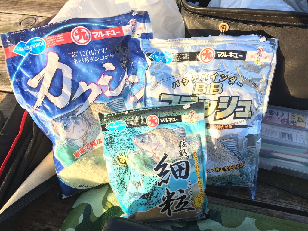 エサはカクシン、BBフラッシュ、シンカ、細流、グルテンなどを使ってやりました。