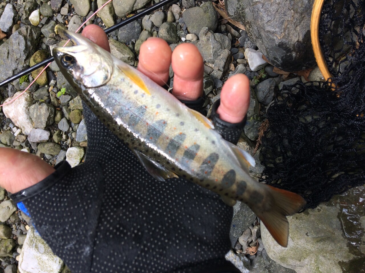4尾のアマゴは苦労してキャストしたご褒美に釣らせていただいた魚ばかりで、全て先行者の後歩きで釣らせていただきました。